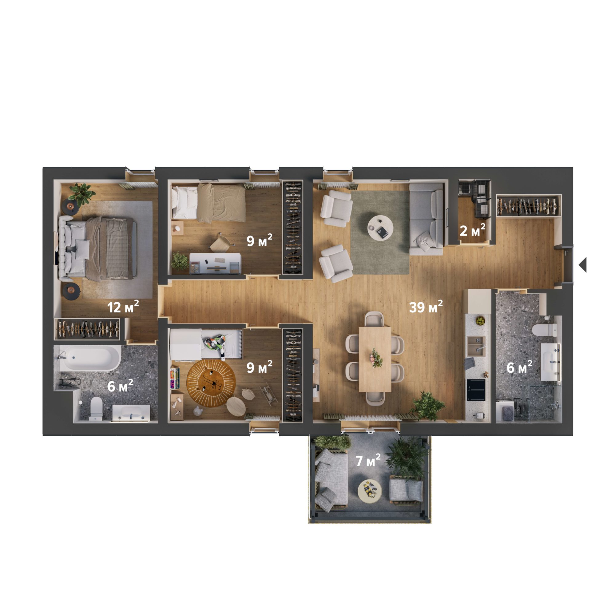 Three bedrooms. Two bathrooms. Storage room. Space for built in wardrobes. Maximized privacy